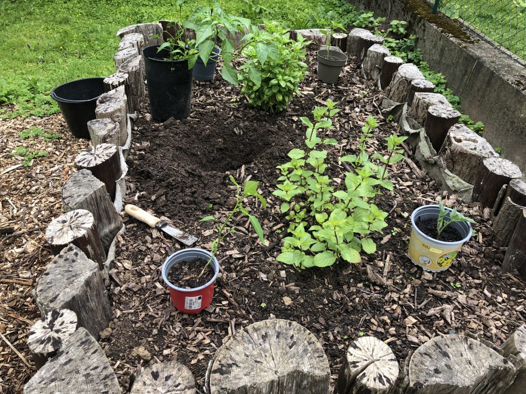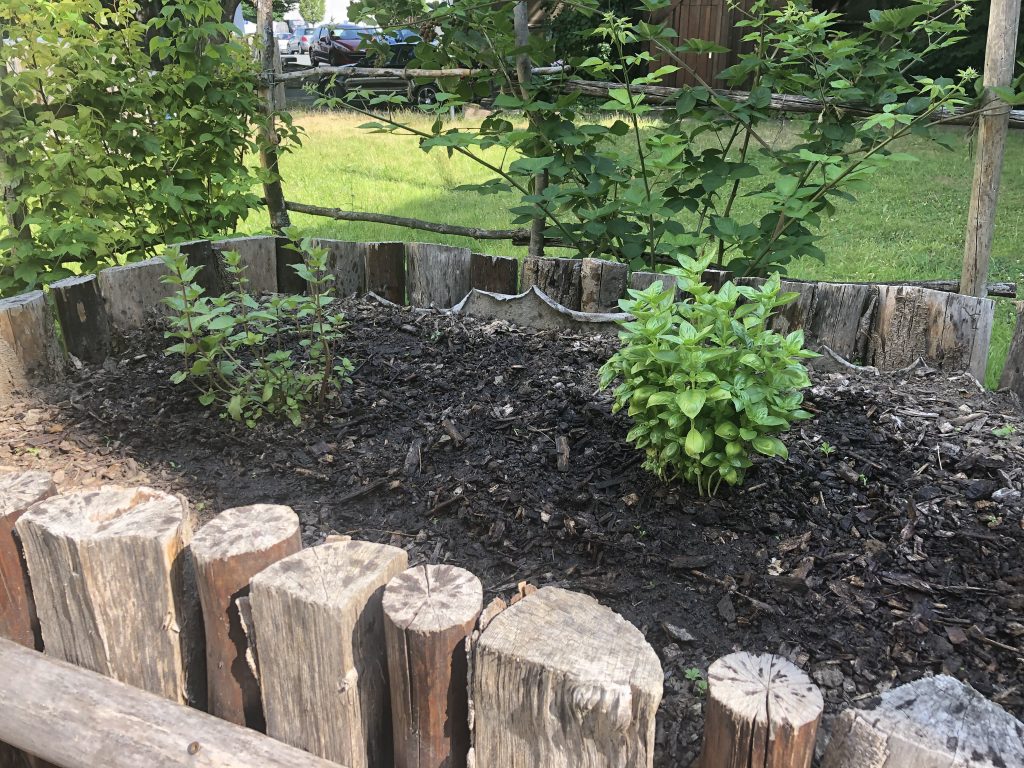 Als Erstes kümmere ich mich um das Thema Kräuter. Da diese generell schnell wachsen, ist eine Saat im Juni kein Problem. Um in der Küche von den Kräutern zu profitieren, entschied ich mich hier für das Einpflanzen von Minze und Basilikum, die ich als „fertige“ Pflanze im Einzelhandel kaufte und einpflanzte.