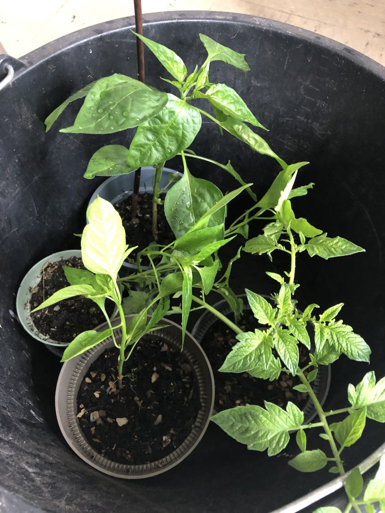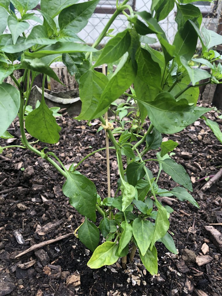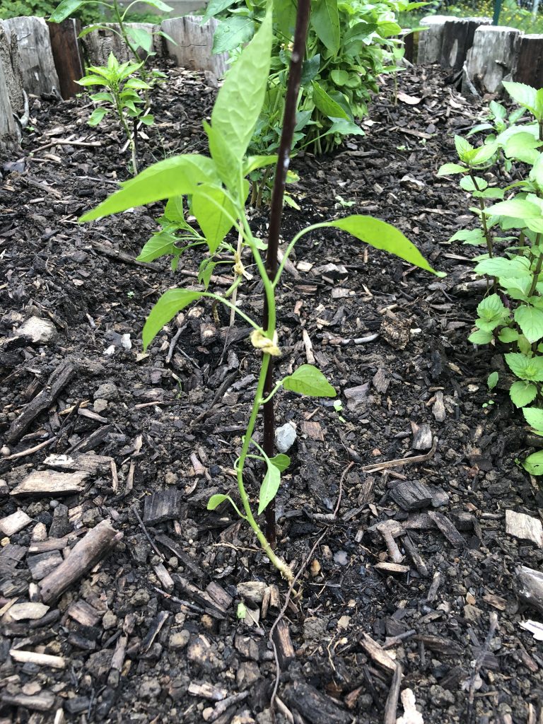 Ich habe das Beet mit Paprika, Chilis und einer vorgezogenen Tomate ergänzt.
