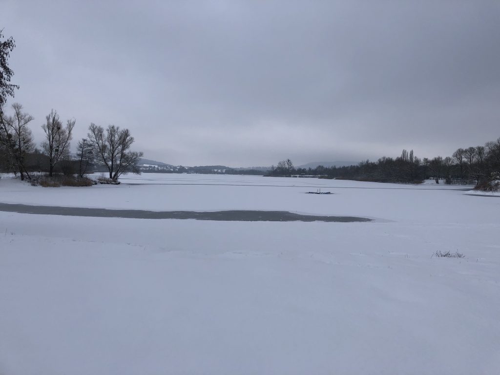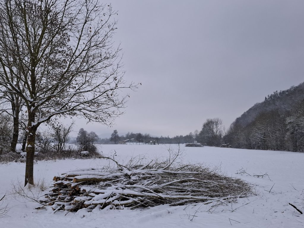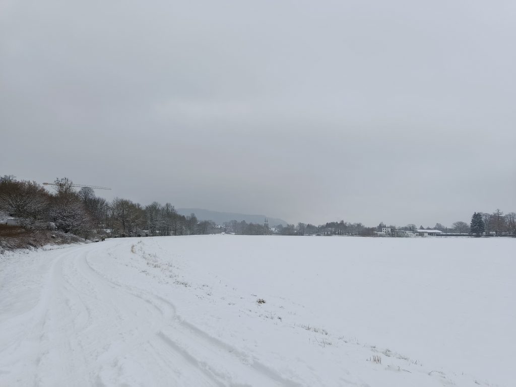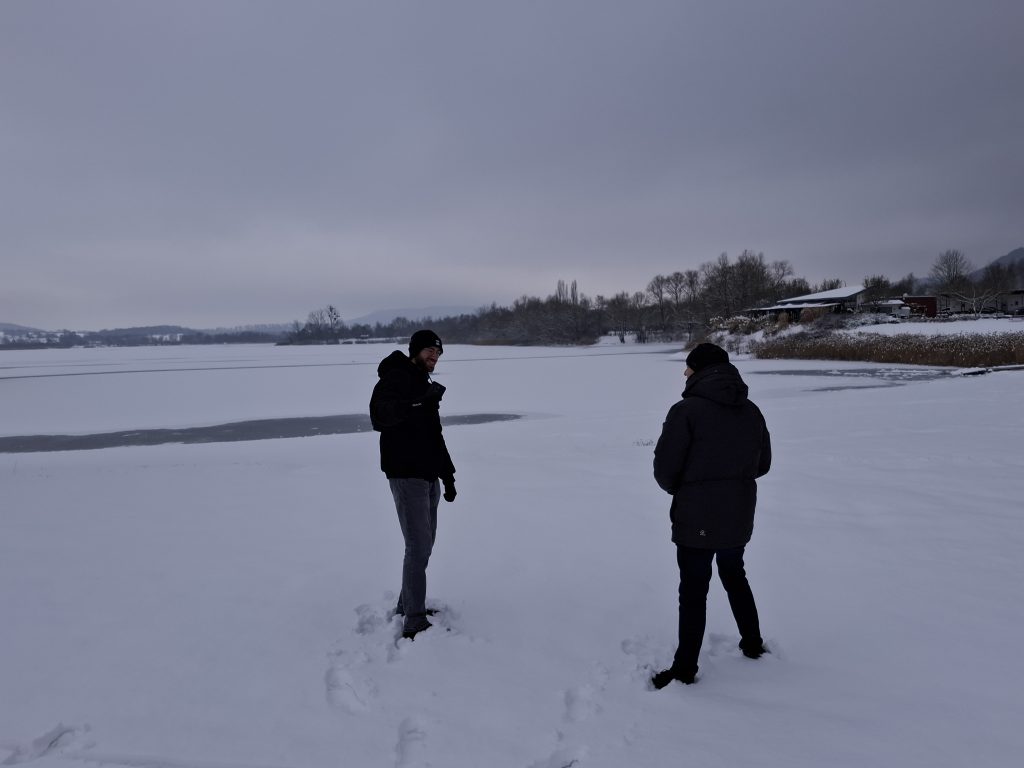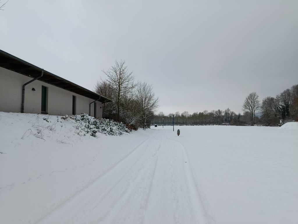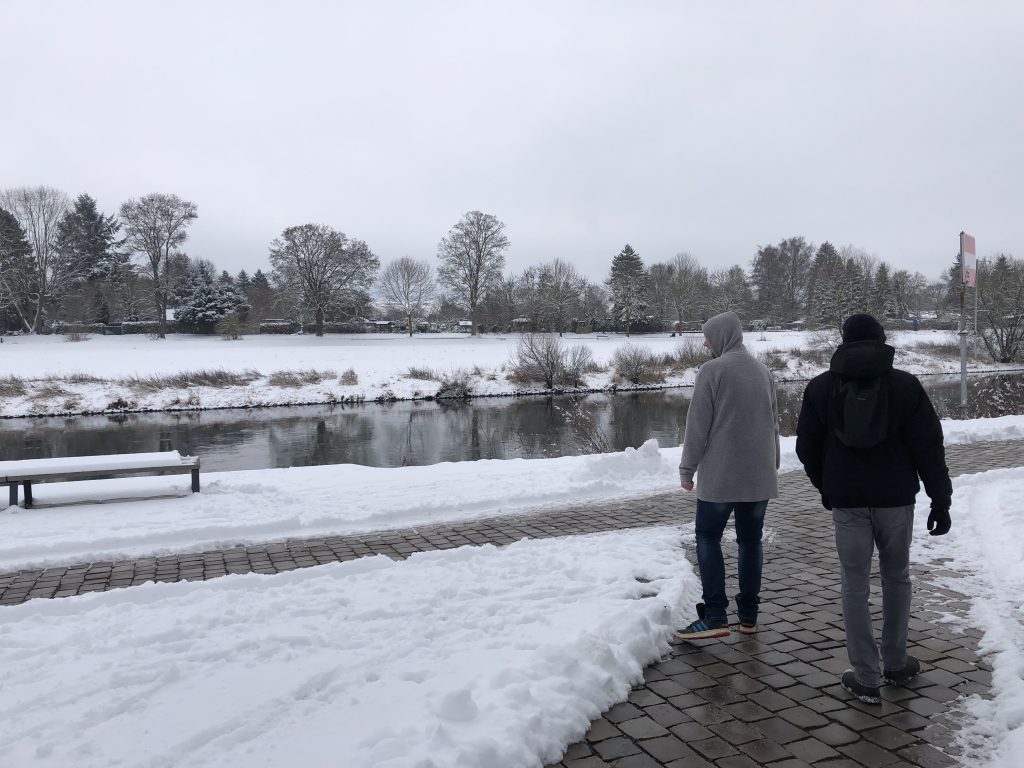 Bei der VHS losgegangen, mussten wir erstmal durch die echt matschige und rutschige Innenstadt. An der Weser angekommen, haben wir uns entspannt auf den Weg zum See gemacht. Auf dem Weg haben wir die eingeschneite Landschaft genossen und Gespräche geführt, während wir versucht haben, uns nicht langzumachen.