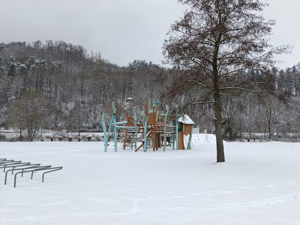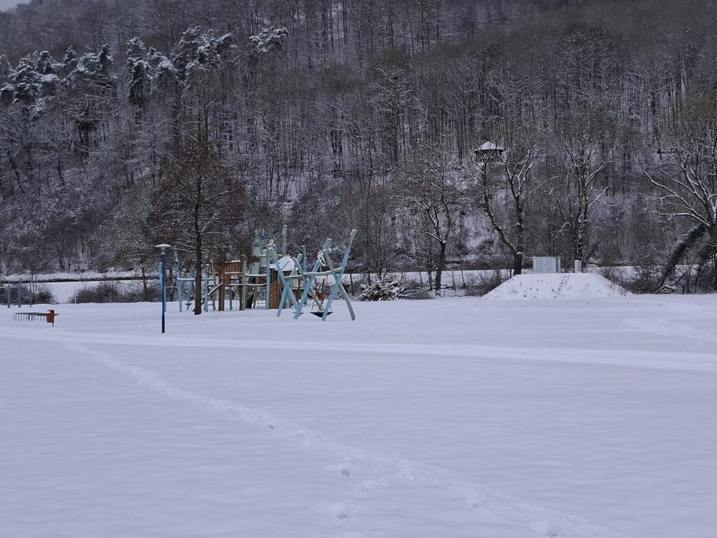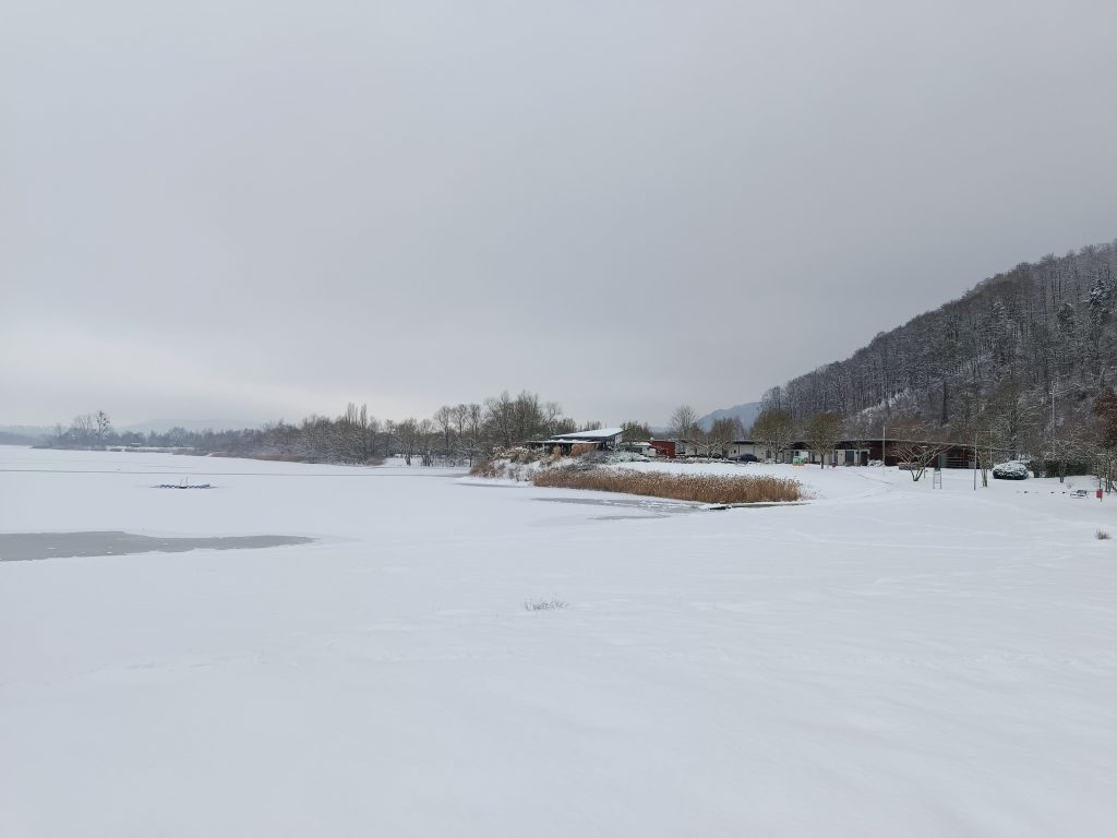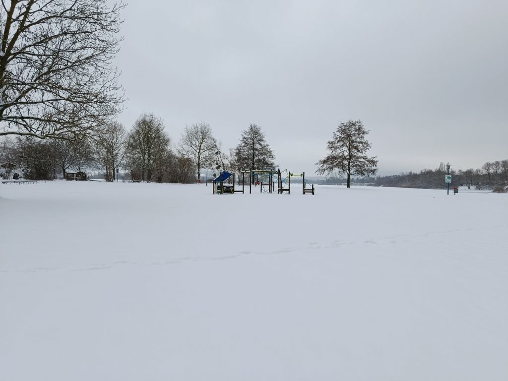 Jeder in der Umgebung von Höxter sollte den Godelheimer See kennen. Wir waren auch schon öfter in verschiedenen Gruppen dort, aber noch nie im Schnee. Die Anlage im Schnee zu sehen, war mal was anderes: die Spielplätze eingeschneit und der See zugefroren.