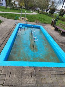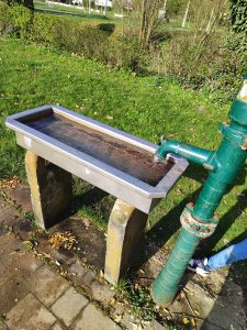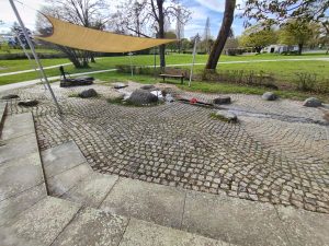 Bei warmen Sommertemperaturen könnte man Kneipp-Tretbecken benutzen und sich eine Abkühlung verschaffen.