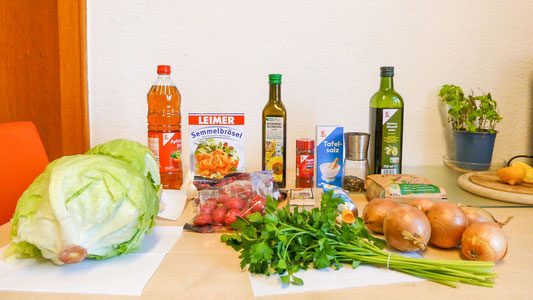 Mit Salat und Radieschen Zutaten für 14 Frikadellen: Zutaten für 14 Frikadellen: Zutaten für 7 Salatportionen: Kosten (25.11.2021): ca. 11€ Zubereitung Die Quinoakörner in ein feines Sieb schütten und mit
