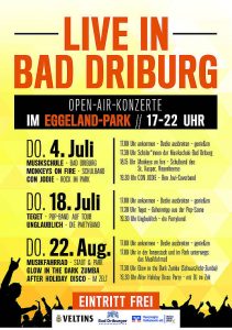 Auch in diesem Jahr lädt die Bad Driburger Touristik wieder an drei Terminen zu Musikgenuss unter freiem Himmel ein.